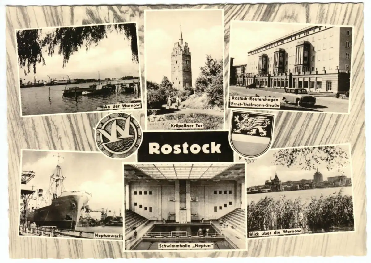 postalisch gelaufen, gestempelt: Rostock 2, 8.8.61