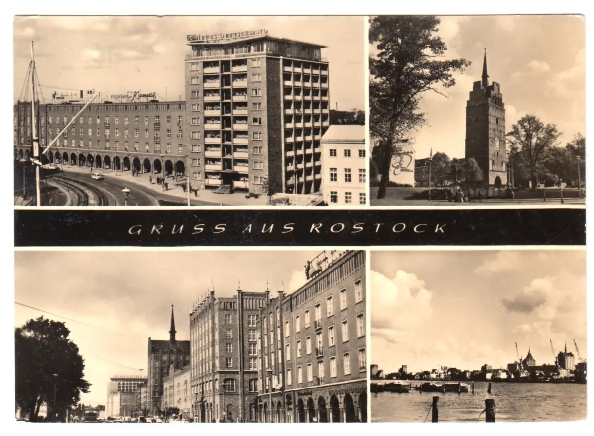 postalisch gelaufen, gestempelt: Rostock, 25, 4.9.67