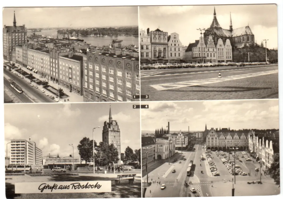 AnsichtskarteRostockvier Abb. - Lange Str., Interhotel Warnow, Ernst-Thälmann-Platz (2)