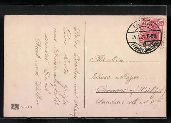 alte Ansichtskarte, gelaufen 1921, guter Zustand