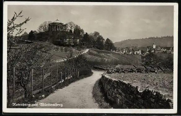 AK Rotenberg, Rotenberg mit Württemberg, von einem Weg aus gesehen