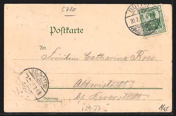 alte Ansichtskarte, gelaufen 1905, minimaler Einriss li. mittig, guter Zustand