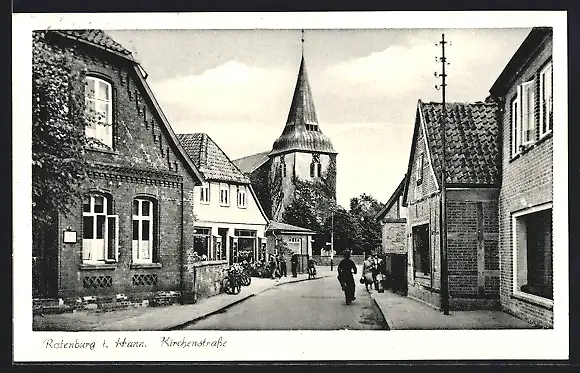 AK Rotenburg i. Hann., Kirchenstrasse mit Kirche