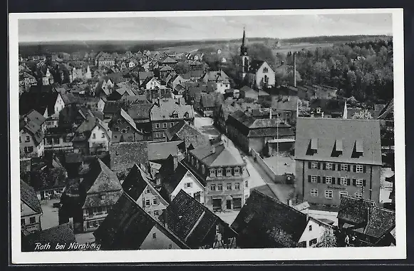 AK Roth / Nürnberg, Ortsansicht von oben mit Einblick in Strassenpartie