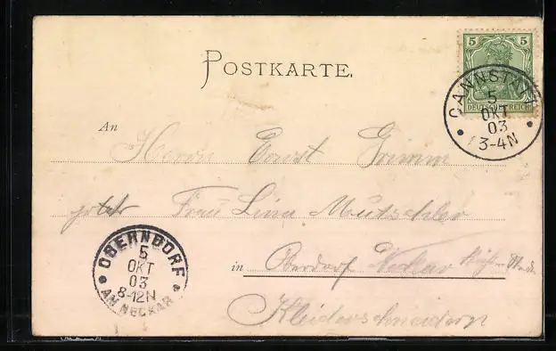 alte Ansichtskarte, gelaufen 1903, Stempelspur, guter Zustand