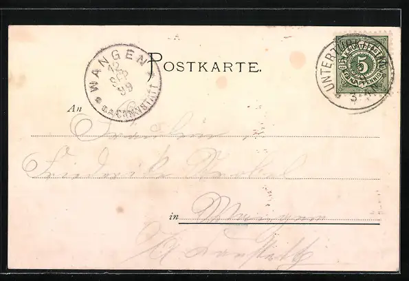alte Ansichtskarte, gelaufen 1899, guter Zustand