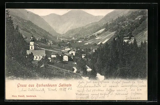 AK Rothenbrunn /Sellrain, Ortsansicht im Tallauf