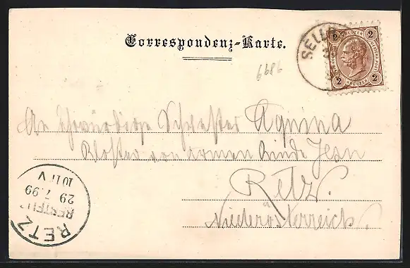 alte Ansichtskarte, gelaufen 1899, oben beschnitten