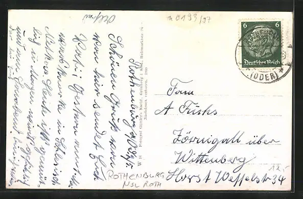 AK Rothenburg, Gebäudeansicht mit Bäumen