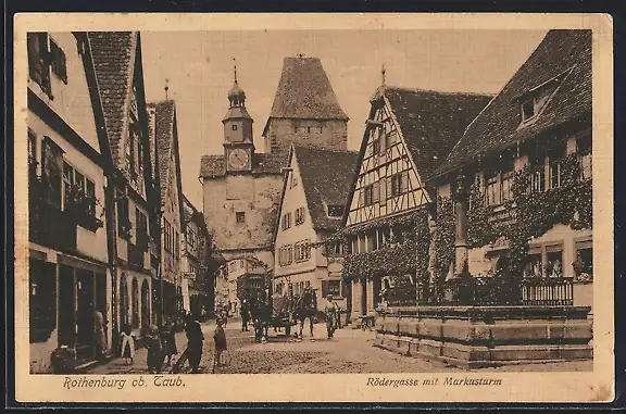 AK Rothenburg / Tauber, Rödergasse mit Markusturm, Strassenpartie