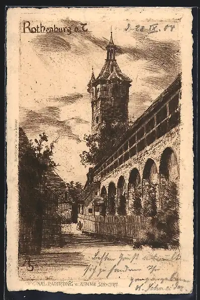 AK Rothenburg o. T., Partie an der Stadtmauer