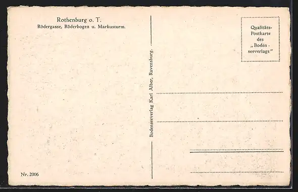 AK Rothenburg o. T., Strasse Rödergasse, Röderbogen und Markusturm