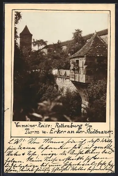 AK Rothenburg o. T., Turm und Erker an der Stadtmauer