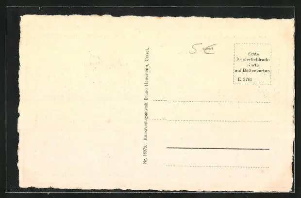 Personenbezogene Daten auf der Rückseite der Karte wurden durch blauen Textmarker unkenntlich gemacht. Die blauen Stellen sind auf die Vorderseite durchgeweicht und wirken sich negativ auf das Postkartenfoto aus