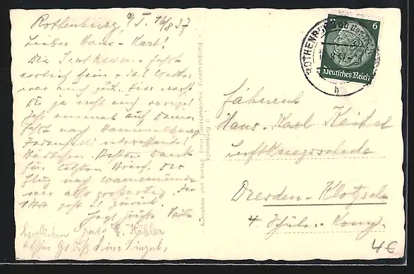 alte Ansichtskarte, gelaufen 1937, guter Zustand