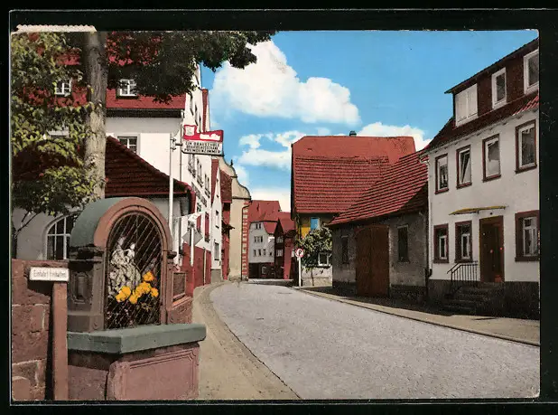 AK Rothenfels / Main, Strassenpartie mit Bildstock