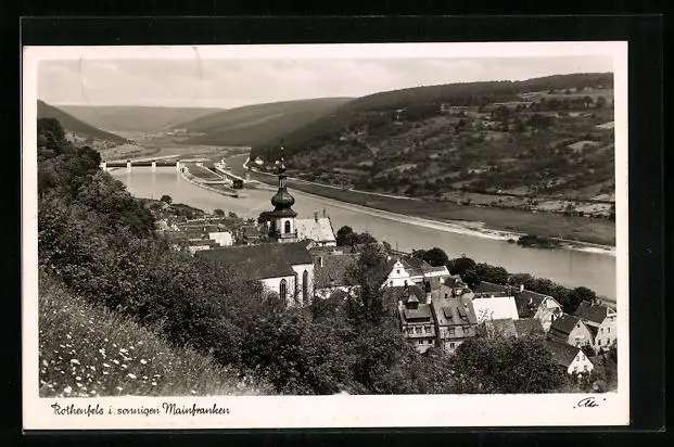 AK Rothenfels i. sonnigen Mainfranken, Totalansicht von einem Berg aus
