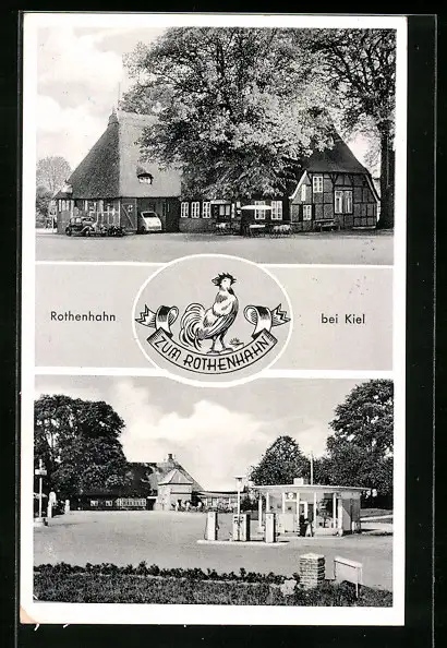 AK Rothenhahn b. Kiel, Gasthof zum Rothenhahn, Tankstelle