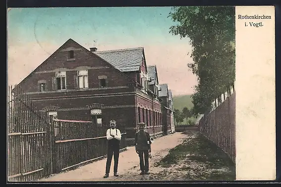 AK Rothenkirchen i. Vogtl., Knaben vor einem Gebäude
