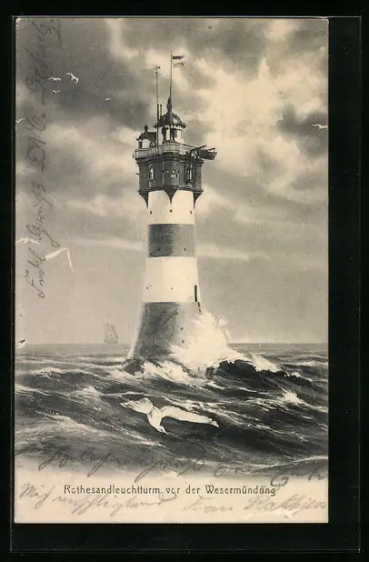 AK Rothesand-Leuchtturm vor der Wesermündung
