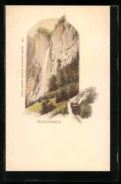 AK Rothornbahn an einem Wasserfall