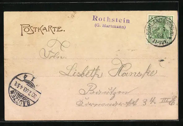 alte Ansichtskarte, gelaufen 1903, guter Zustand