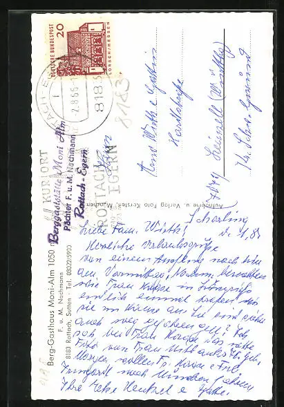 AK Rottach, Berg-Gasthaus Moni-Alm