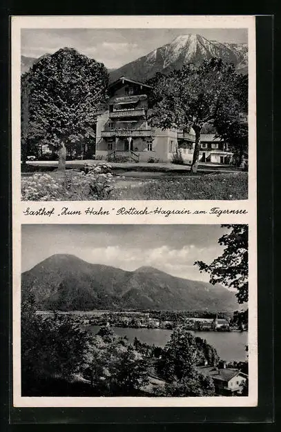AK Rottach-Hagrain a. Tegernsee, Gasthof Zum Hahn mit Bergpanorama