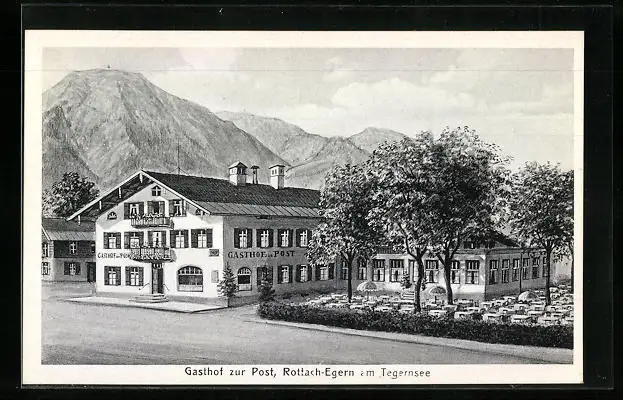 AK Rottach /Tegernsee, Gasthof zur Post mit Terrasse