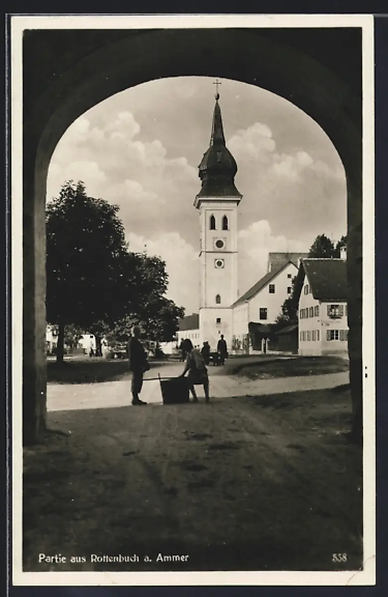 AK Rottenbuch a. Ammer, Ortsansicht mit Tordurchblick