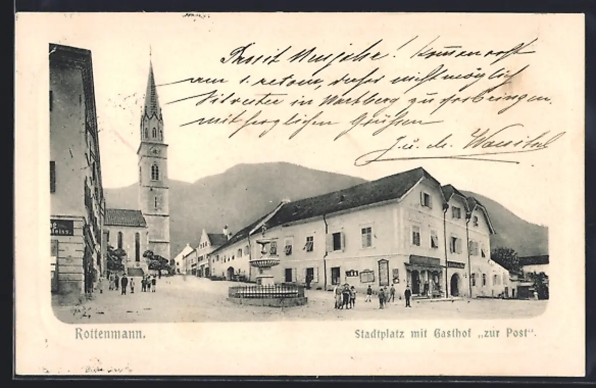 AK Rottenmann, Stadtplatz mit Gasthof zur Post