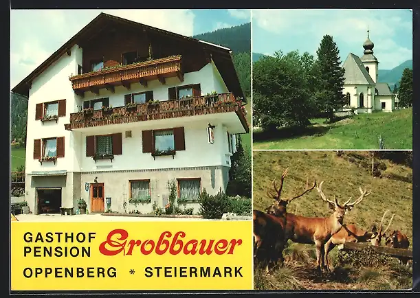 AK Rottenmann /Steiermark, Oppenberg, Gasthof-Pension Grobbauer, Kirche, Hirsche