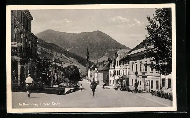 AK Rottenmann, Strassenpartie in der unteren Stadt mit Geschäft