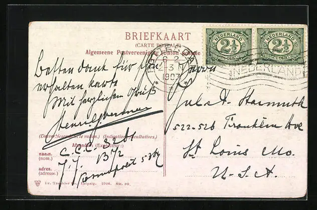 alte Ansichtskarte, gelaufen 1907, Stempelspur, guter Zustand