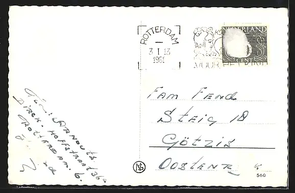 alte Ansichtskarte, gelaufen 1961, rückseitig Klebe- und Papierreste, Eckknick unten re., guter Zustand