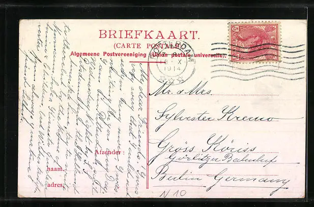 gelaufen 1914, Eckknick oben li., guter Zustand