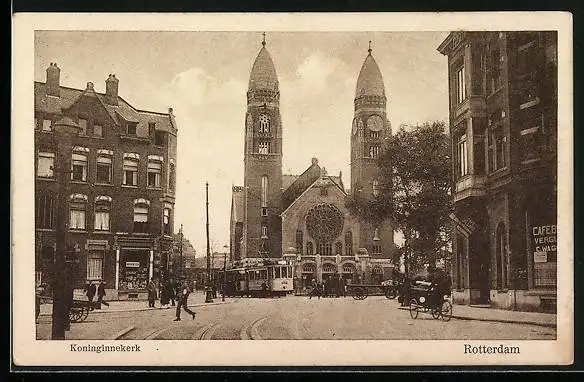 AK Rotterdam, Koninginnekerk, Strassenbahn