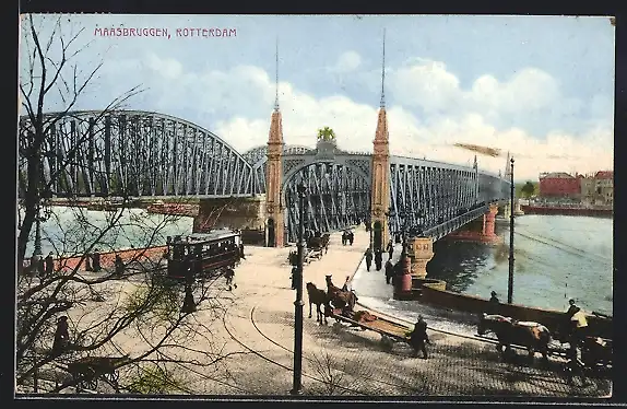 AK Rotterdam, Maasbruggen, Strassenbahn