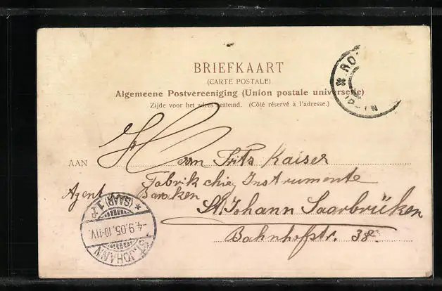 alte Ansichtskarte, gelaufen, 1905 Briefmarke entfernt, guter Zustand