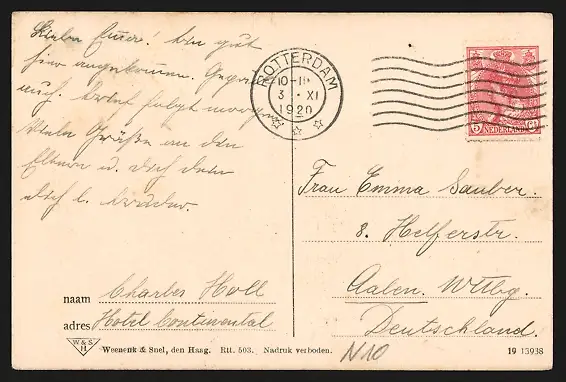 alte Ansichtskarte, gelaufen 1920, Eckknick oben re., guter Zustand