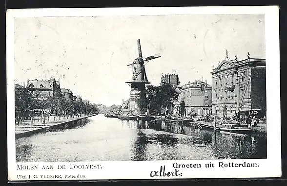 AK Rotterdam, Molen aan de Coolvest, Um 1900
