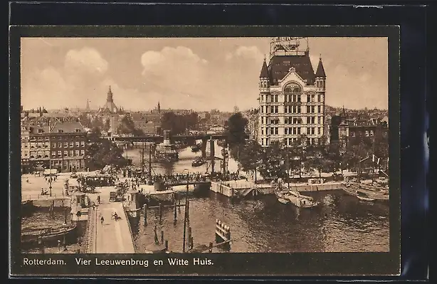 AK Rotterdam, Vier Leeuwenbrug en Witte Huis, Strassenbahn