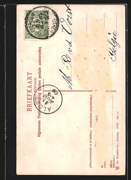 alte Ansichtskarte, gelaufen 1906, rückseitig Oberflächenschaden, guter Zustand