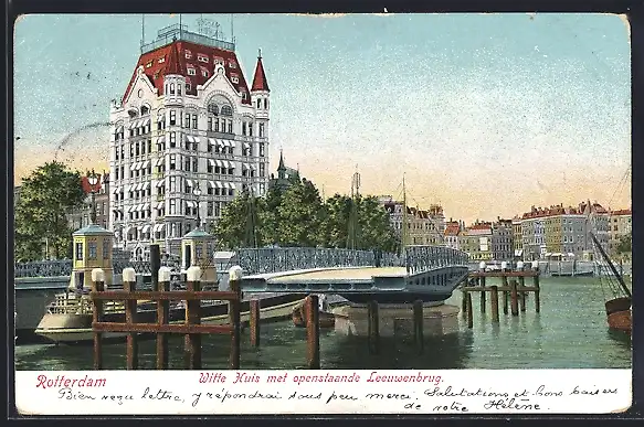 AK Rotterdam, Witte Huis met openstaande Leeuwenbrug