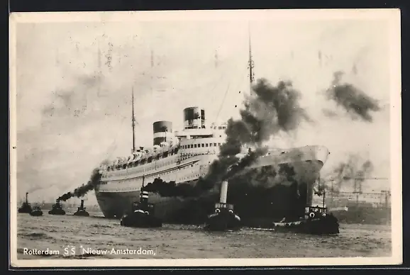 AK Rotterdam, das Passagierschiff S.S. Nieuw Amsterdam von Schleppern umgeben
