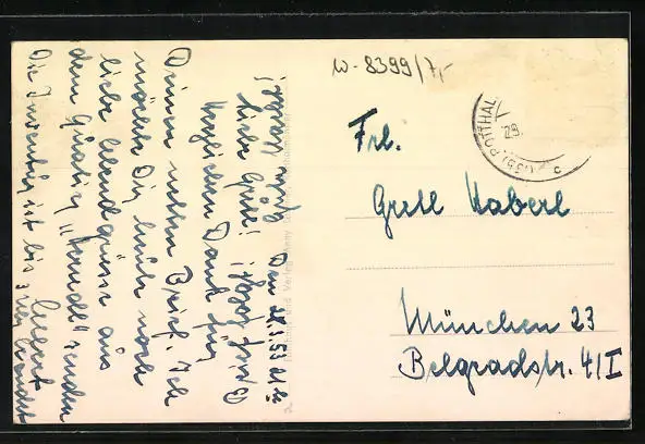 alte Ansichtskarte, gelaufen 1953, Briefmarke entfernt, guter Zustand