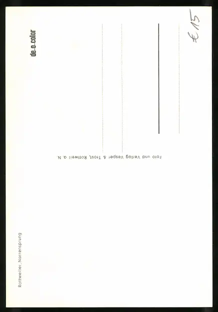 Personenbezogene Daten auf der Rückseite der Karte wurden durch blauen Textmarker unkenntlich gemacht. Die blauen Stellen sind auf die Vorderseite durchgeweicht und wirken sich negativ auf das Postkartenfoto aus