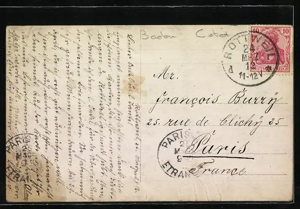 gelaufen 1912, Bugspuren unten li. u. mittig, guter Zustand