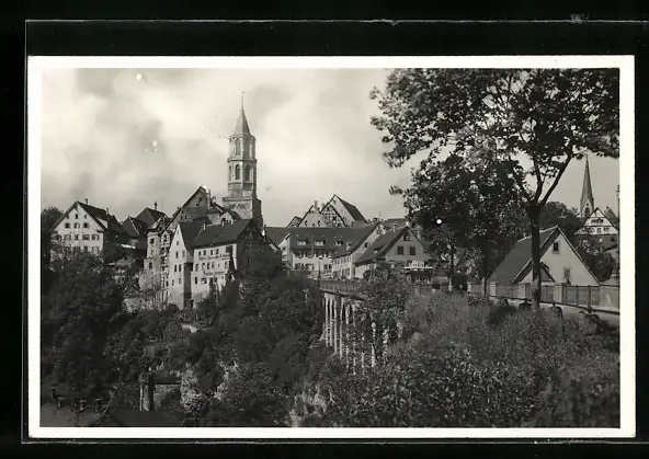AK Rottweil a. N., Ortspartie mit Blick auf Kirchturm