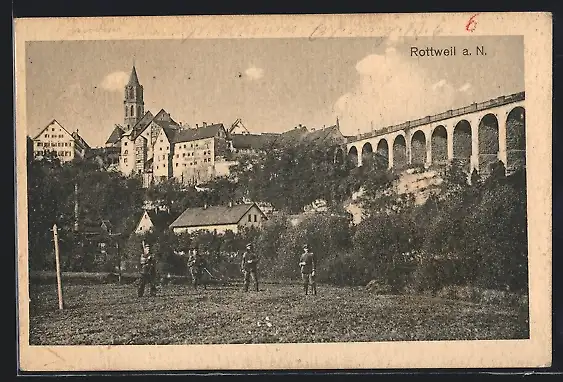 AK Rottweil a. N., Teilansicht mit Viadukt